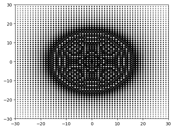 x = np.linspace(-30, 30, n) # n points between -30 and 30