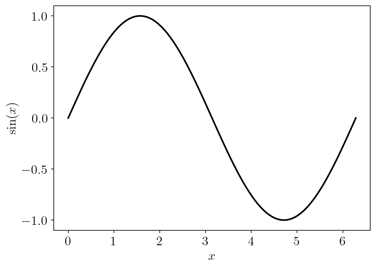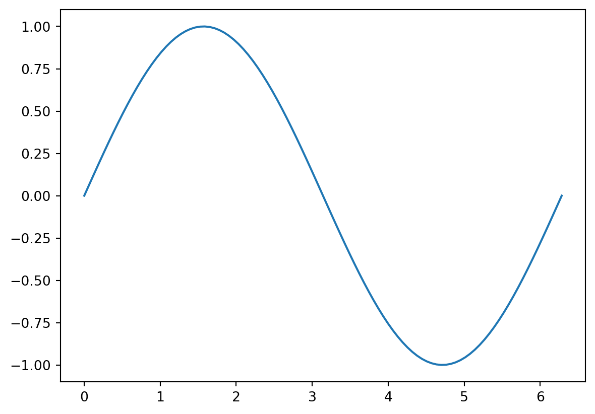 Plot \(y = \sin(x)\) from \(x = 0\) to \(x = 2\pi\)
